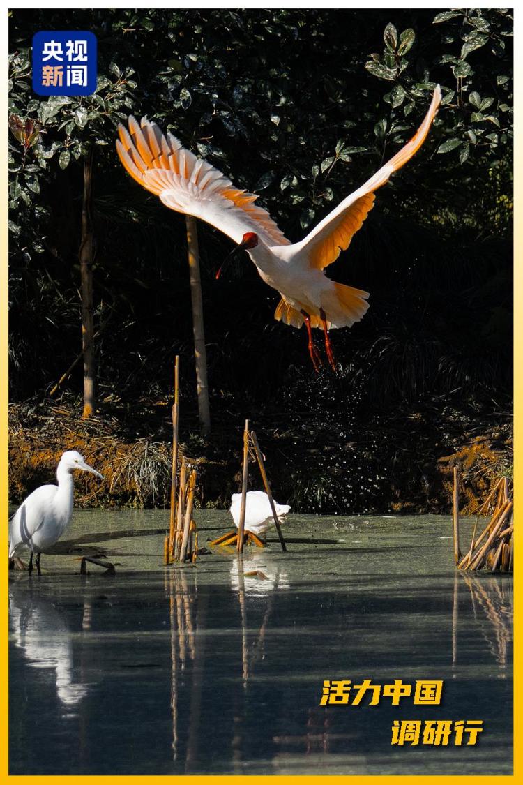 湖州德清通过退耕还湖、水体治理、湿地修复,为朱鹮营造了理想栖息地。