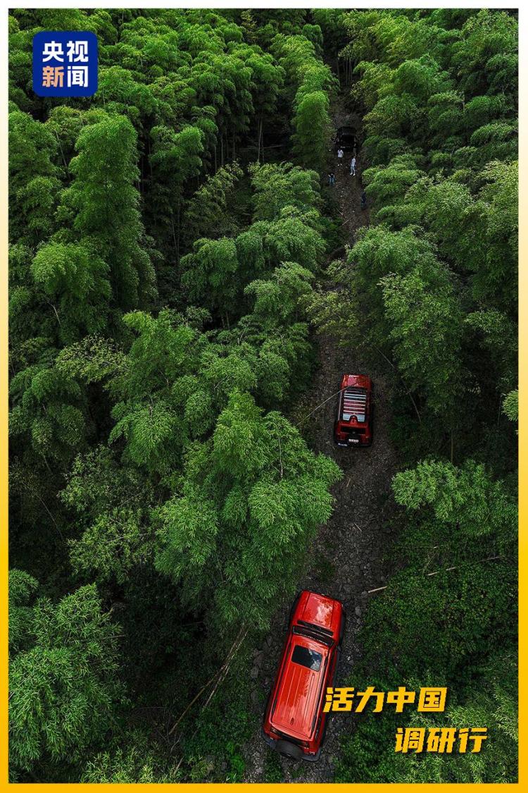 △车辆在安吉竹林间穿行