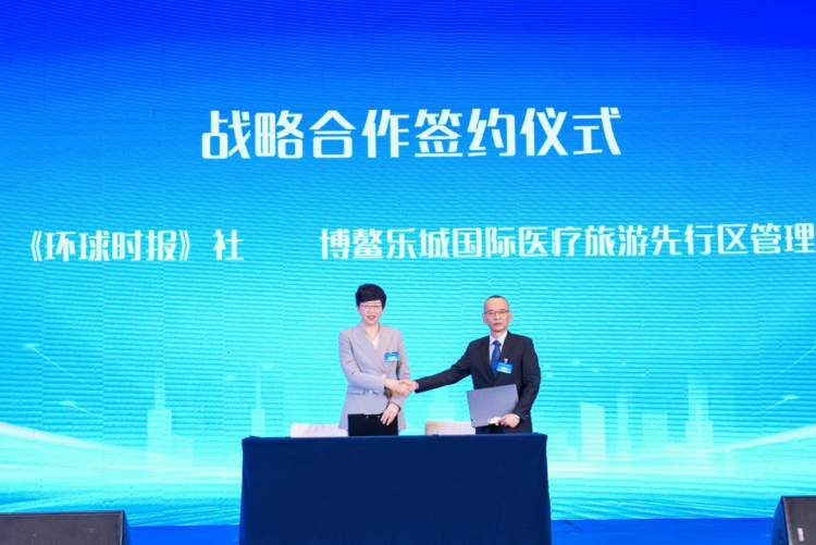 大会期间还举行了《环球时报》社与海南博鳌乐城国际医疗旅游先行区管理局战略合作签约仪式。双方将围绕健康产业国际化、医疗开放创新等领域开展深度合作,共同探索高质量发展新路径。