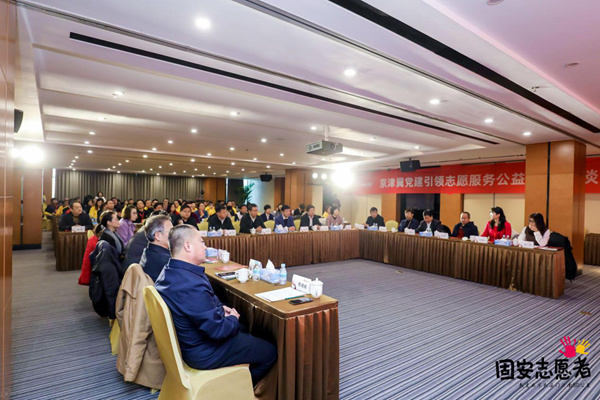 2019年12月21日,“京津冀党建引领志愿服务公益发展座谈会”在河北固安产业新城举行。来自京津冀专家和近百名志愿者代表,就如何加强党建对中国特色志愿服务工作的引领作用;如何学习京津等先进地区志愿服务经验、助力雄安志愿服务建设;如何多方共建共享京津冀志愿服务平台等议题进行了充分交流,尤其对激发中国志愿服务向上向善的社会力量进行了深入研讨。同时,京津冀多方志愿者共同宣读《京津冀志愿服务共建倡议》,启动“爱在白洋淀-志愿学堂”共建项目。