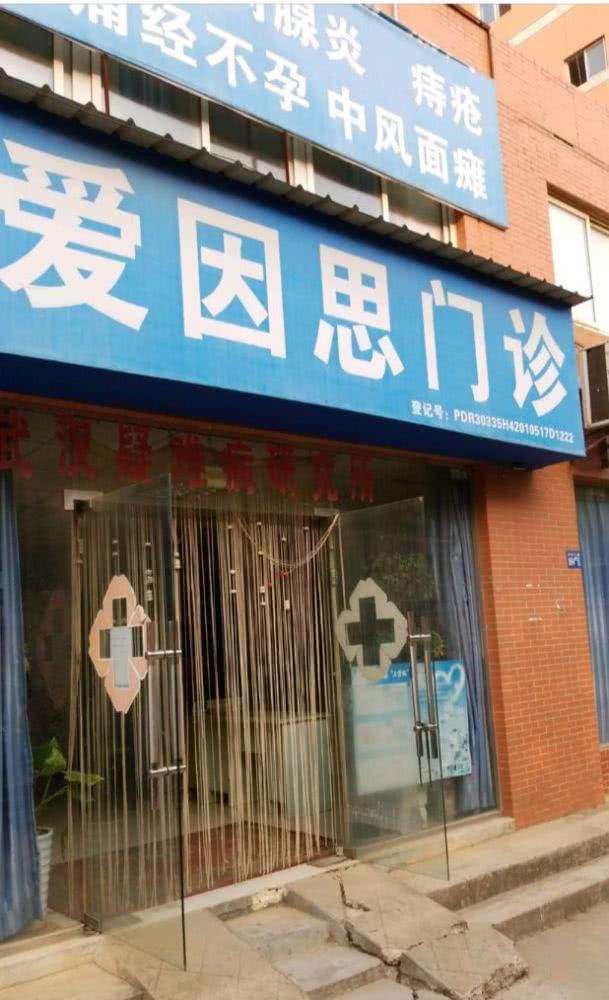 这家诊所位于汉阳区一个6栋高层住宅组成的小区旁,招牌上打出了“武汉疑难病研究所”的广告。诊所有前后两个门:一个门通向小区内部道路,一个冲着一条整修多年也未通行的市政道路,附近还有一片荒废的农田,再远些就是垃圾回收站。