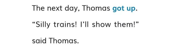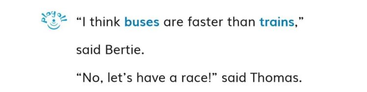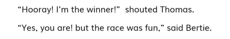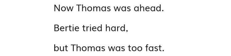 比如,在《托马斯和巴士柏蒂》这个故事中,小火车托马斯和巴士柏蒂在比赛谁能跑得最快。