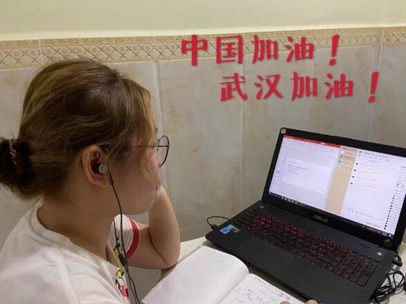 上了几天课之后,我意识到在线平台可能比我想象的更有用。我可以做很多事情,比如用麦克风和教授说话、发送信息,我还可以为我的班级做演讲。现在,我非常享受上课的乐趣,并保持学习的动力,就像我坐在教室里一样。柬埔寨的时区是GMT+7,比中国晚1个小时,所以我对课程的时差并没有任何问题。