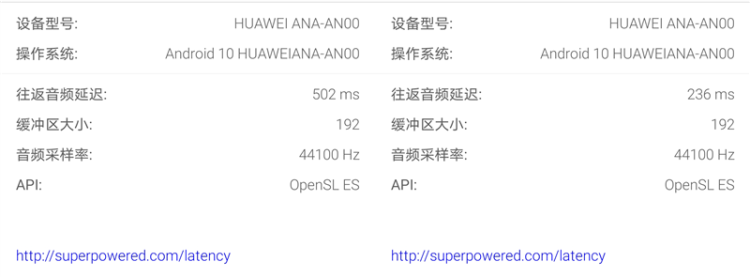 使用软件测试,分别测试手机内部系统往返延迟和手机内部系统到耳机的往返延迟,简单的计算,即可得到一款耳机的延迟数据。根据官方的宣传,华为FreeBuds 3的延迟不高于190ms,实际测试也确实如此,在使用OpenSL ES音频接口的前提下,最大延迟为133ms,足矣保证不影响日常游戏和语音。