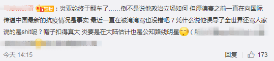 有网民则质问炎亚纶:谭德塞误导什么了?↓
