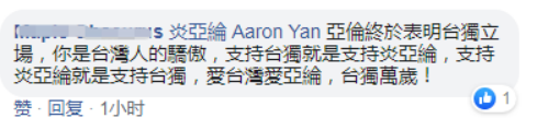 还有支持“台独”的网民欢欣鼓舞声称,炎亚纶这是表明“台独”立场了↓