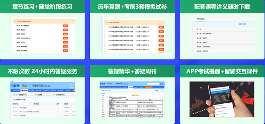 2、提供交互式学习体验,边上课边检验对知识的理解、掌握程度,智能提问提高学生上课的注意力; 3、购买税务师超值精品班,中华会计网校还会附送各类学习资料包括上一年的课程。