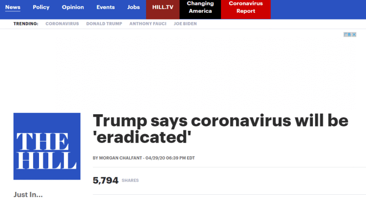 报道称,特朗普只是说病毒将被“消灭”,但没有给出进一步的解释。