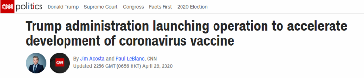 美媒:特朗普政府立项加速新冠疫苗研发,目标时间今年年底