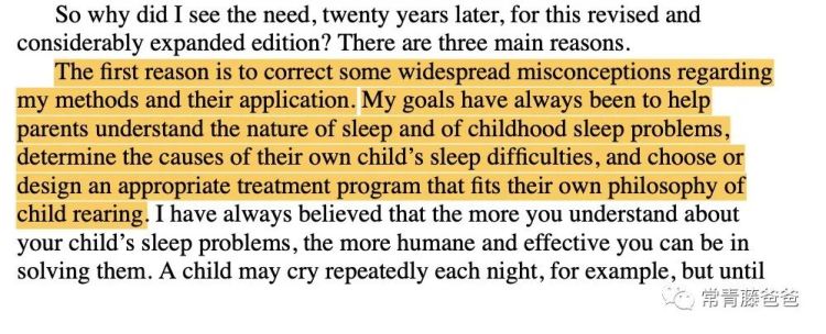 我从骨子里是反对“哭声免疫”的,因为从名字上就知道这违背了孩子的正常发展规律。而不少文章在介绍费伯法的时候,还专门加上了一句“也称为‘哭声免疫法’”,这实在是大大的误会。关于这一点,费伯在第二版序言里专门强调过。