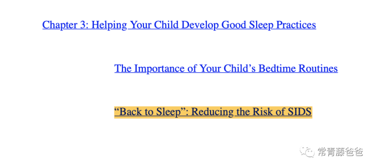 事实上,在书的第三章节,费伯就明确表示,反对任何的趴睡姿势,孩子必须sleep on the back,也就是仰着睡觉。