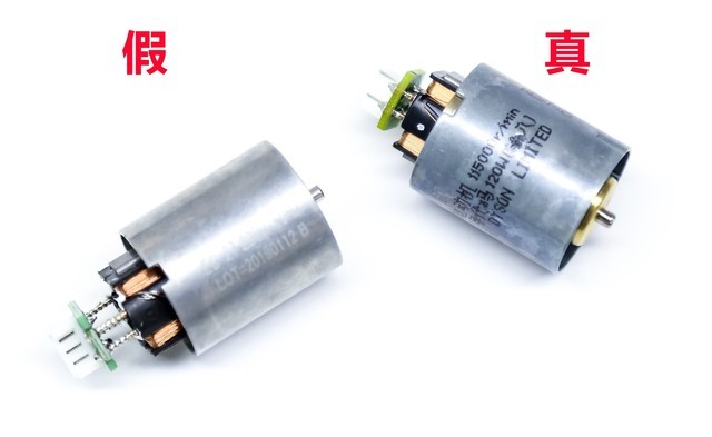 在真假吹风机的马达部分,真假马达虽然在外观相似度上做到了80%以上,但正品马达整体的内部工艺和叶轮细节都要比假马达好很多,而且在马达的机身位置上正品马达有明显的马达参数的标识,以及溯源二维码,但假马达仅有一个20190112的生产时间标识,从马达的生产时间上也可以看到,假冒伪劣产品并未因警方的打击彻底杜绝,私下仍通过其他渠道在赚黑心钱。