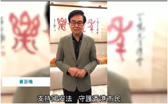 黄百鸣说:支持涉港国安立法,守护香港市民。↓