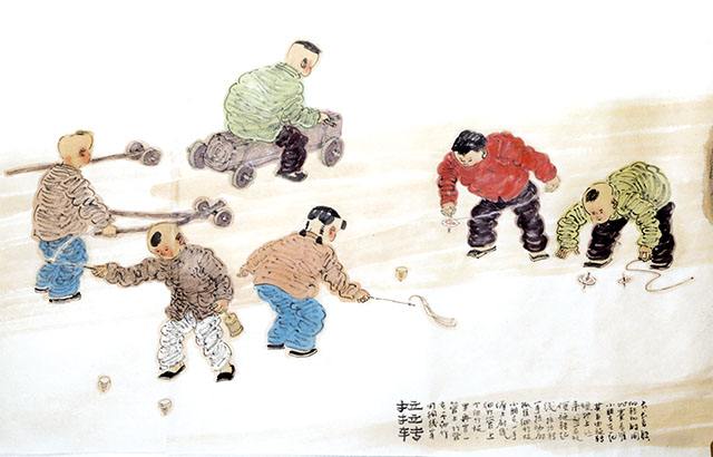 在明代,北京风俗《抵京景物略》中收录的一首《抽陀螺》:杨柳儿死,踢毽子;杨柳发芽,打拔儿。这是当时最流行的一首童谣,用杨柳的变化记录了孩子在四季玩的游戏。