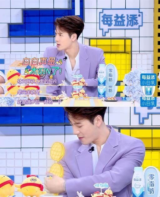 节目里,王嘉尔还在表扬白敬亭,形容小白的手臂肌肉像菠萝包。