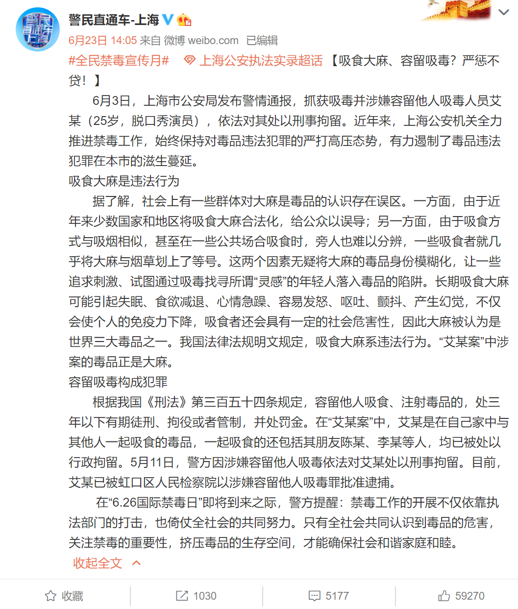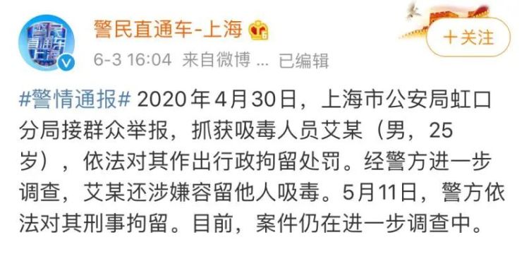 之后,上海警方公布卡姆吸毒案详情: