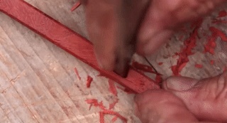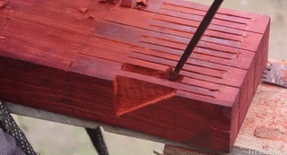 一顿行云流水的操作后,这块木头内部就被分解成了各个部位,但这些部位依然彼此相连。