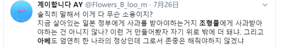 “说实话,这有什么用呢?难道不是应该接受日本政府的道歉,而非雕像的道歉?这么做除了自我安慰还有什么用。再说了,安倍也是一国首相,应该给予相应的尊重。”