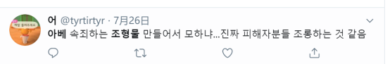 “‘在少女像前下跪的安倍雕像’,不知道什么团体干的,真的很幼稚,水准太低。”