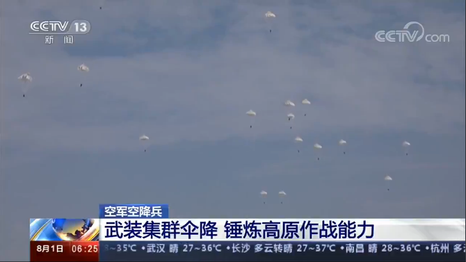 这两天,空军空降兵还把伞翼航迹延伸到了高原。在西北高原深处,空军空降兵某旅采取多机编队、分段编组的方式,组织武装集群伞降训练,锤炼部队高原空降作战能力。