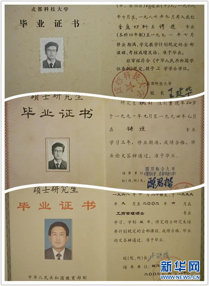 而姚朴的求学经历也正好是四川大学发展历程的最好见证:他高中毕业收到大学录取通知书时,上面所写的录取高校还是“成都科技大学”;到了1994年硕士毕业,毕业证上印上了“四川联合大学”六个大字;5年后,他又挑战了川大的工商管理硕士,并于2002年成功拿到由四川大学颁发的硕士学位证书。