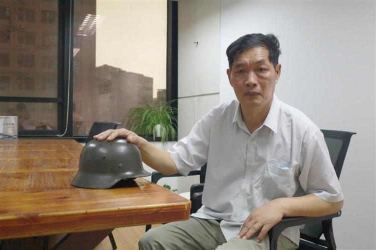 “你别看它不起眼,现在找遍全世界都没有几件了!”记者见到俞建国时,他带来了一顶M35德式钢盔实物,墨绿色的表面有些许刮擦痕迹,钢盔一侧印着的青天白日标记仍清晰可见,钢盔内部的牛皮衬垫也保存得十分完好。
