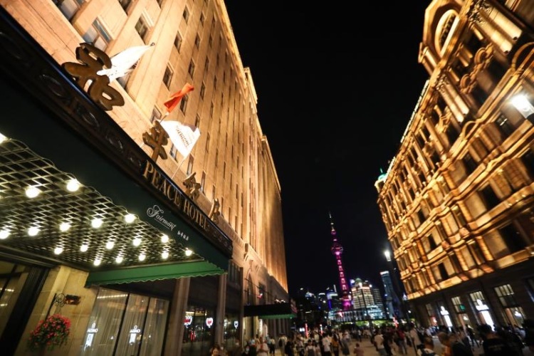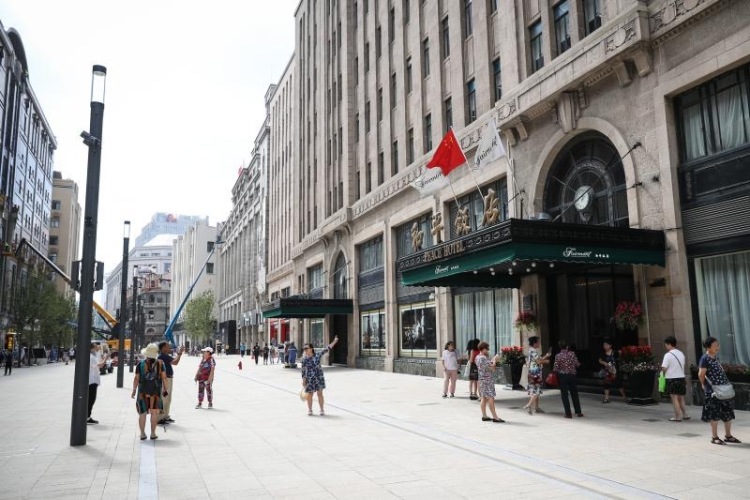 东拓前,想与和平饭店的正门口合影的确有点难:站在和平饭店一侧的人行道上,很难拍全和平饭店的门头;但站在马路对面的人行道上,又经常会拍进马路上来往的车辆。“现在好了,东拓段都是步行区域,站在步行道的中央,‘和平饭店’四个大字、充满历史韵味的门头,以及人物都可以轻松入镜。”