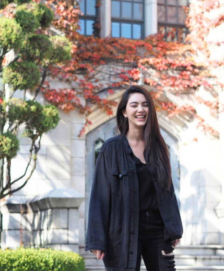 其实Mai的穿衣风格也不是很单调,除了喜欢基本款,稍微打扮一下就可以惊艳四座,蓝色衬衫搭配小香风外套,简单的马尾···即便是素颜也能很亮眼,笑容也很治愈。