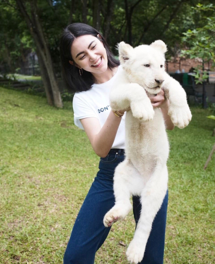 如果单看Mai的五官,属于棱角分明的高冷型,但私下的她却很阳光朝气,还是个非常有有爱心的女孩,喜爱小动物,常常分享自己与小动物的互动美照。