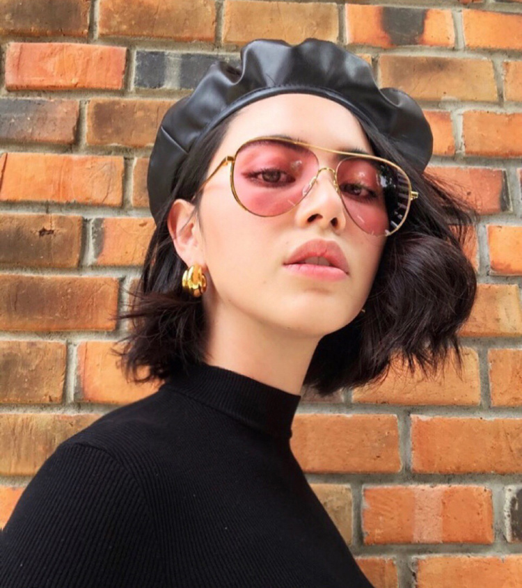 除了她的服装风格,配饰也选的很到位,比如黑色的贝雷帽搭配基本的黑色修身上衣,就修饰的恰到好处,时髦却不夸张。
