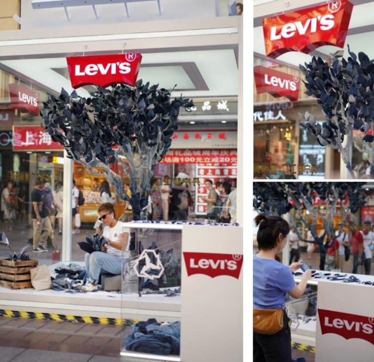 为庆祝Levi’s®丹宁梦工厂开幕,Levi’s®邀请USEDEM匠人在店铺正门口熙攘的热街上打造了别具一格的“丹宁森林”,这是对大自然的演绎,倡导可持续发展的同时更是潮流艺术的表达。开幕活动之前,Levi’s®在店铺门口创造了一个等待被装饰的森林,由艺术家利用消费者已废不穿的Levi’s®牛仔服装作为布置材料,并邀请艺术家根据收集的牛仔服饰进行现场创作,打造出一片“丹宁森林”。Levi’s®在钢筋水泥的上海滩繁华商业街打造一场充满浓郁丹宁气息的自然飨宴。为了庆祝新店开业,店铺即日到9月30日止,还有大力度的丹宁周边满赠优惠活动,以及高科技定制限时服务,和丹宁过一个愉快的夏天吧!