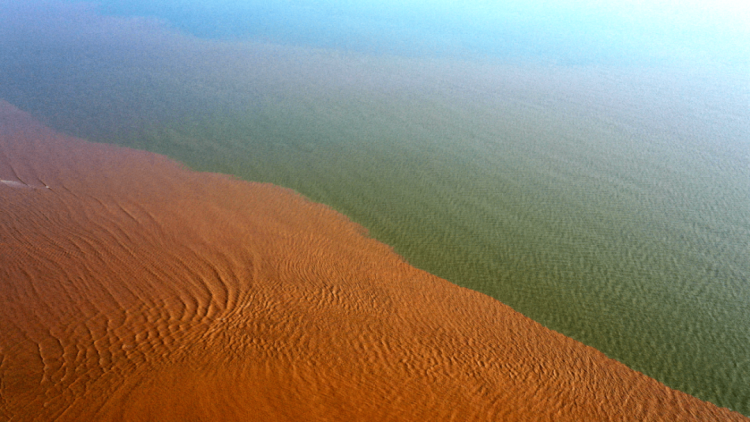 黄河入海口,“黄蓝交汇”奇观(摄影:东营广播电视台杨斌)