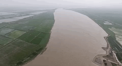 自黄土高原起,黄河一路裹挟着泥沙向大海奔流,泥沙堵塞河道,河床不断抬高,淤积、摆动、出汊、改道。历史上,黄河下游有记载的决堤1500多次 ,如同巨龙摆尾一般,黄河入海口经历了从北到南、又从南到北的大摆动。1976年5月21日,黄河尾闾人工改道清水沟流路,滚滚黄河水从此稳定地向着东营黄河口镇的出海口进发,注入渤海。