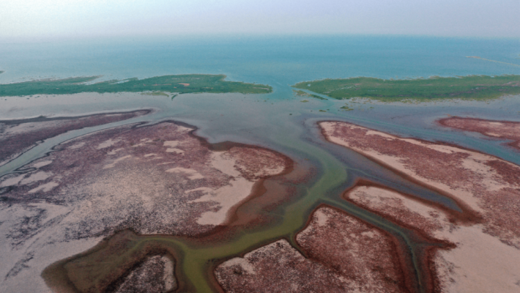 黄河携带的泥沙在黄河口源源不断塑造出新生的土地(摄影:东营广播电视台杨斌)
