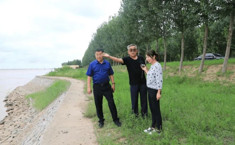 总台央广记者在黄河边采访尚廷奎和尚海防(摄影:李超君)