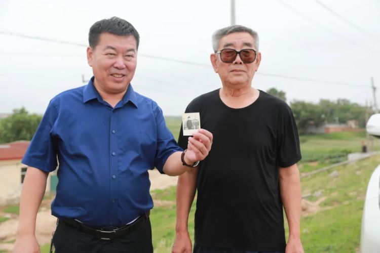 尚廷奎、尚海防父子俩在七十年代住所旁(摄影:胜利油田孤岛采油厂李超君)