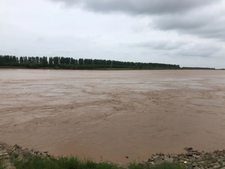 在下游最后一座浮桥附近,黄河走了一个直角弯。汛期里,水流湍急。
