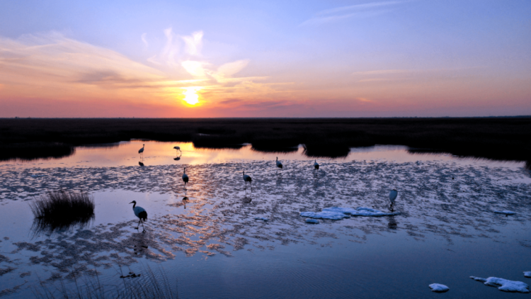 越来越多的珍稀野生动物在黄河口湿地栖息(摄影:东营广播电视台杨斌)