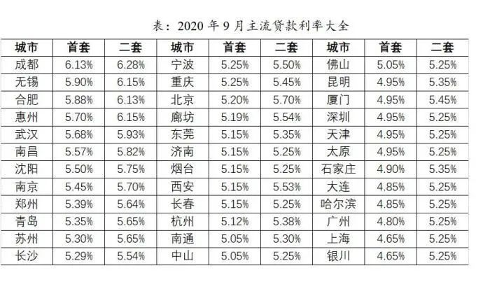 2020年9月主流贷款利率。数据来源:贝壳研究院