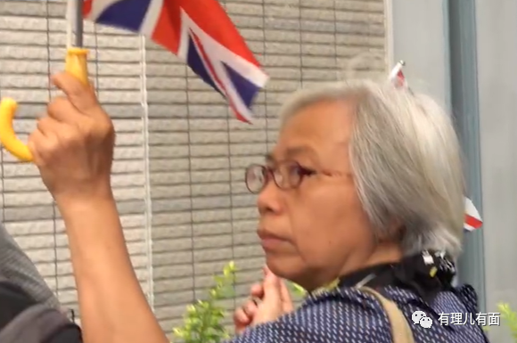 王婆的“出道”之路很是顺畅。那是在去年“修例风波”刚开始的6月9日,民阵发起大游行。一位头发花白的小老太太出现在游行现场,引起了众人关注。只见她手持英国国旗,高叫港独口号,并要求警方释放被捕暴徒,一副“大义凛然”的“慷慨模样”!