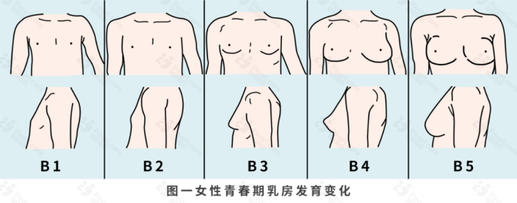 我们先了解女性乳房发育的正常过程。一般女孩子最早在8岁进入青春期,乳房发育是其中的典型表现。