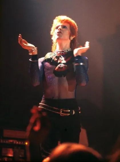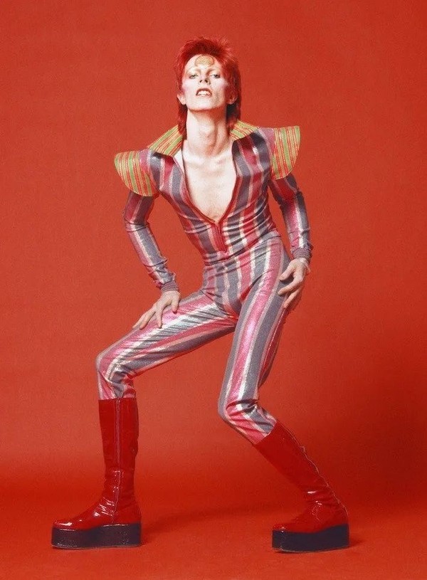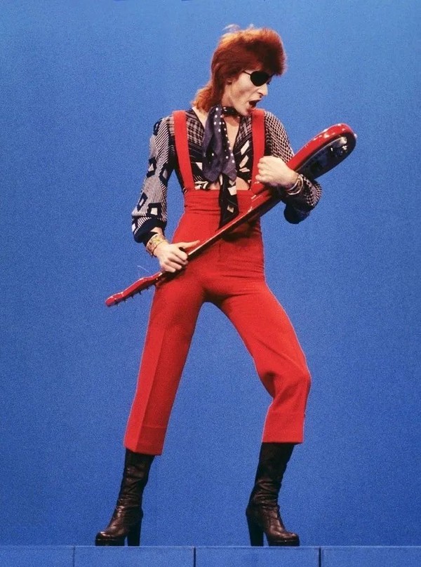 而“孔雀革命”中,最具代表性的人物当属David Bowie。他彻底打破了男士沉闷、正经的穿着。