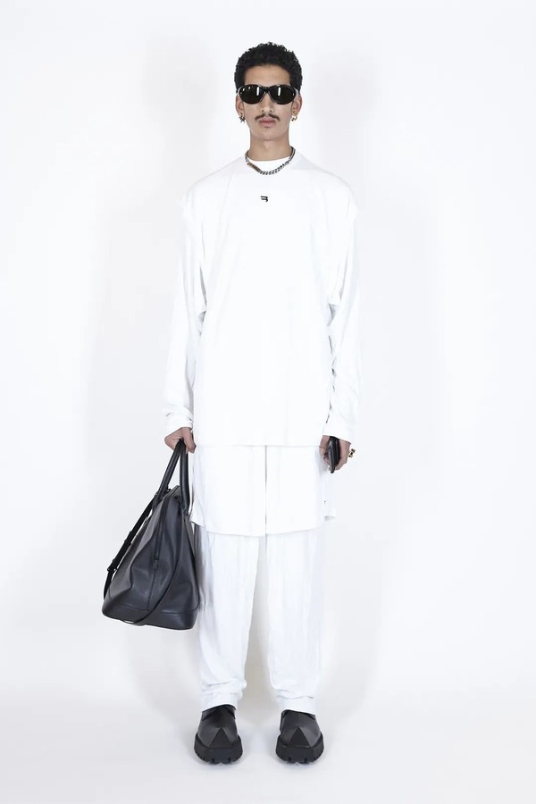 Balenciaga把日常中常见的运动套装、牛仔夹克、宽松阔腿裤分别让男女模特穿上。