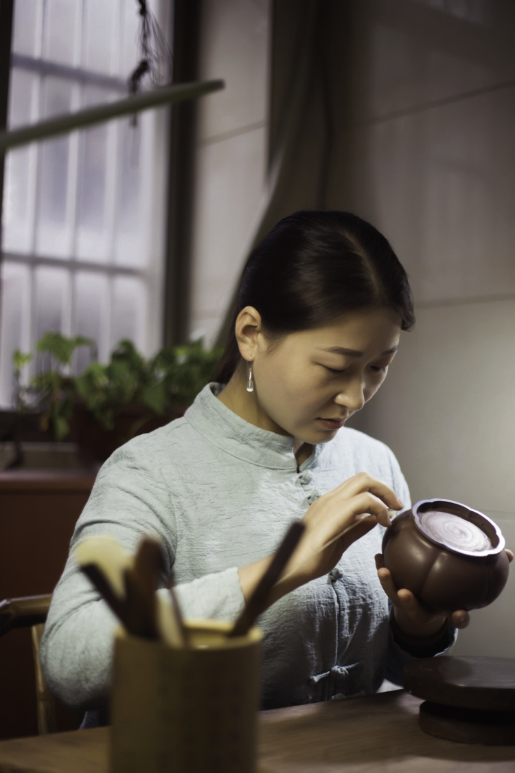 字文韫,助理工艺美术师。1995年生于宜兴,2016年毕业于无锡工艺陶瓷学院,擅长制壶,喜好书画。 毕业后随刘世涛老师学习书画。紫砂作品荣获 “2020工美新力量”长三角工艺美术新人新作大赛金奖、第三届江苏省陶瓷创新设计大赛金奖。
