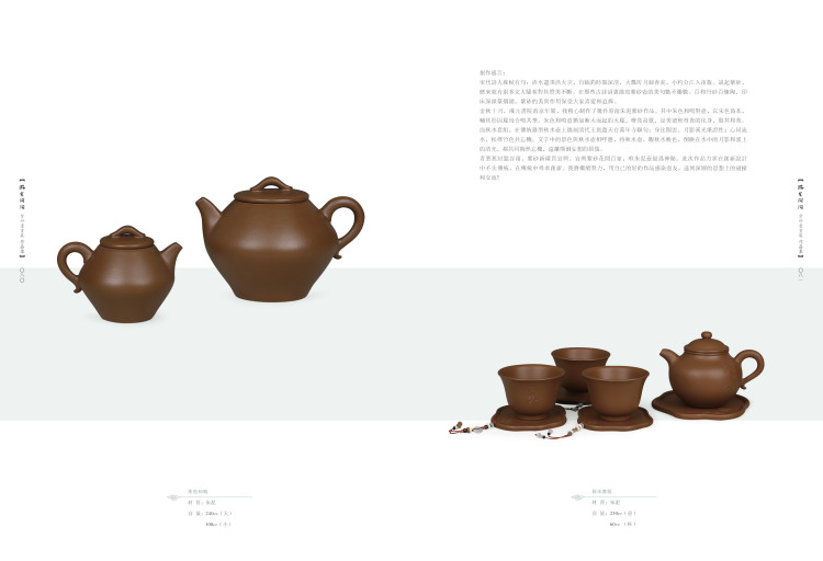 本次展出的紫砂作品,出自一批年轻的紫砂人之手。他们热爱紫砂文化,同时有着自己的理解和追求;他们继承传统,同时做了许多新的探索和尝试;他们的不少作品让人耳目一新,为紫砂工艺注入了新的文化含量,丰富了人们对紫砂的了解和认知。