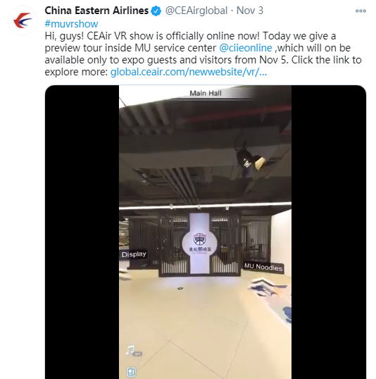 值得一提的是,此次东航创新打造的“进博VR展厅”还在在脸书、推特等六大全球主流社交平台同步上线,让海外观众也有机会一同感受新科技、新服务带来的“东方魅力”。