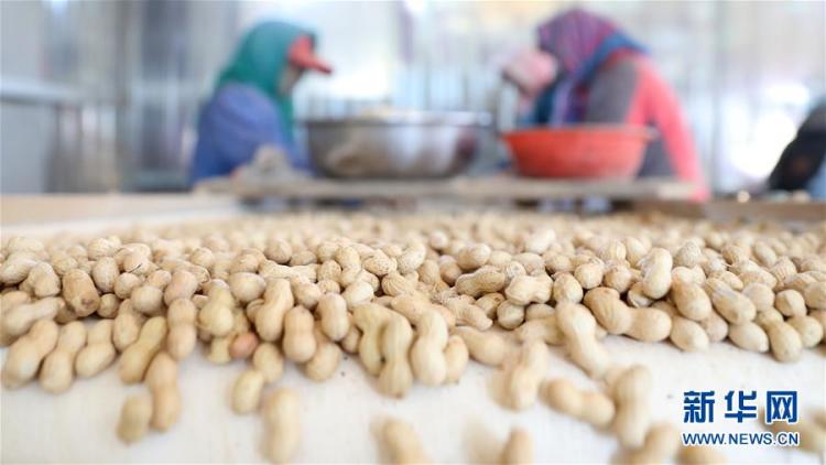 在辽宁省锦州市义县张家堡镇官场沟村一家农业企业里,工人在生产线上将收获的花生进行分拣(11月4日摄)。新华社记者 姚剑锋 摄