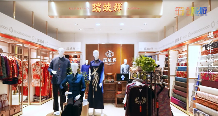 瑞蚨祥绸布店副总经理夏岚:瑞蚨祥自1862年创立以来,一直随着时代的发展而发展,把至诚至上.货正价实.言不二价.童叟无欺的百年服务精神传承至今,为满足顾客的需求逐步发展和完善着服务模式和技艺水平。100多年的积累与沉淀方能形成具有自己技艺特点的中式服装手工制作技艺。瑞蚨祥中式服装体现了中国人对自身文化的自信,男子身着中式服装,气度非凡,一派儒雅俊朗;女士身着旗袍,雍容华贵,端庄典雅,更显现了温婉含蓄的东方神韵。瑞蚨祥中式服装的特点在于秉承传统经营理念,无论从里料到面料都十分考究,高超的工艺技术处处体现了瑞蚨祥一丝不苟的传统匠人精神。