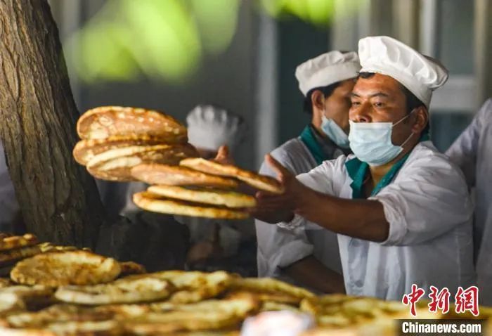 馕饼是新疆传统美食,阿克苏馕产业园里馕的品种可达70多种,洋葱馕、芝麻馕、瓜子馕、辣椒馕、玫瑰花酱馕……