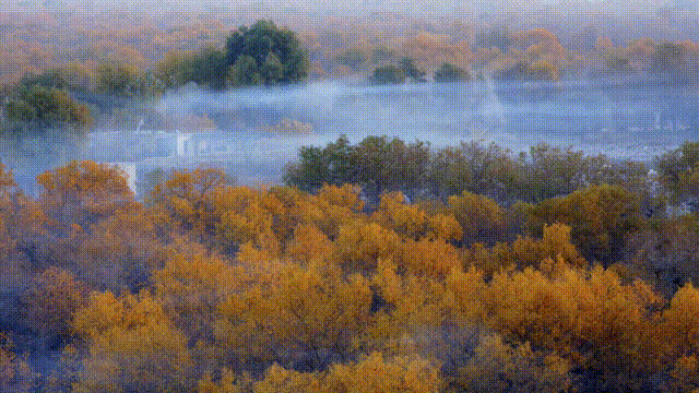 生长在这里的胡杨被人们誉为“沙漠守护神”,生而千年不死,死后千年不倒,倒后千年不腐。